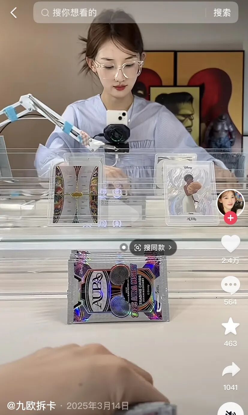 反差最大的例子来自一个名为“PTGC丽嘉拆卡”的账号,仅有2003个粉丝,但其在2024上半年销售额超过100万元,拆卡直播俨然造富神话。