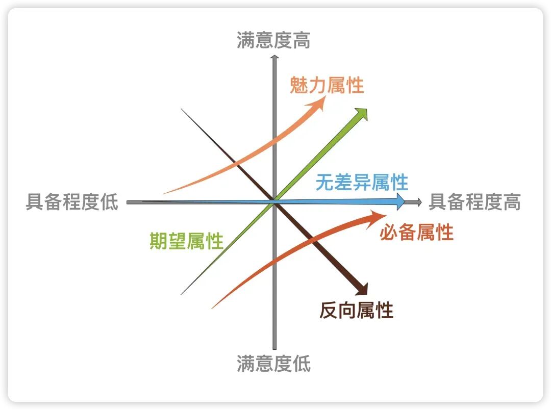 Kano模型通过二维坐标系清晰地展示了不同属性与用户满意度之间的非线性关系。