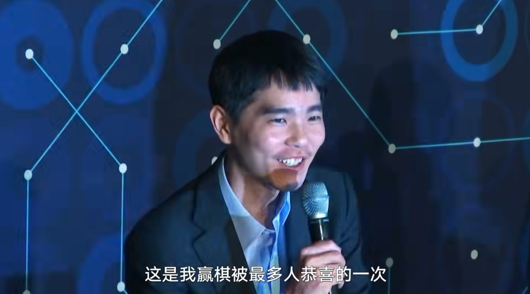 纪录片里有一个画面,李世石走进新闻发布会现场,按理说他赢了,应该很开心,但他崩着脸,一直忍住没笑,然后全场开始鼓掌欢呼,他才绷不住笑出来。