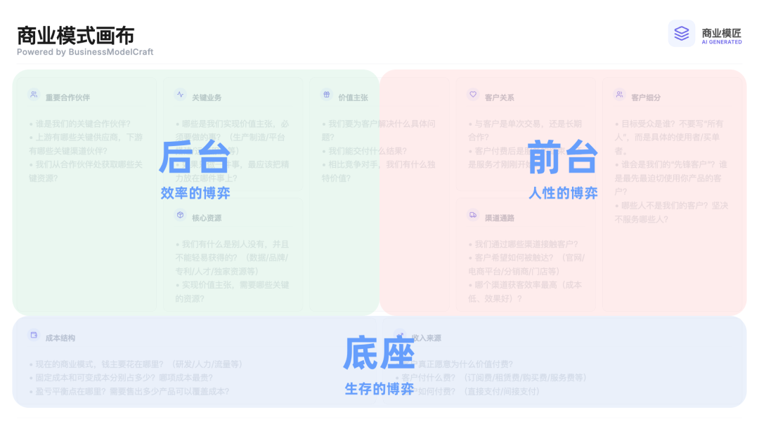 (图:商业模式画布的前台、后台、底座)
