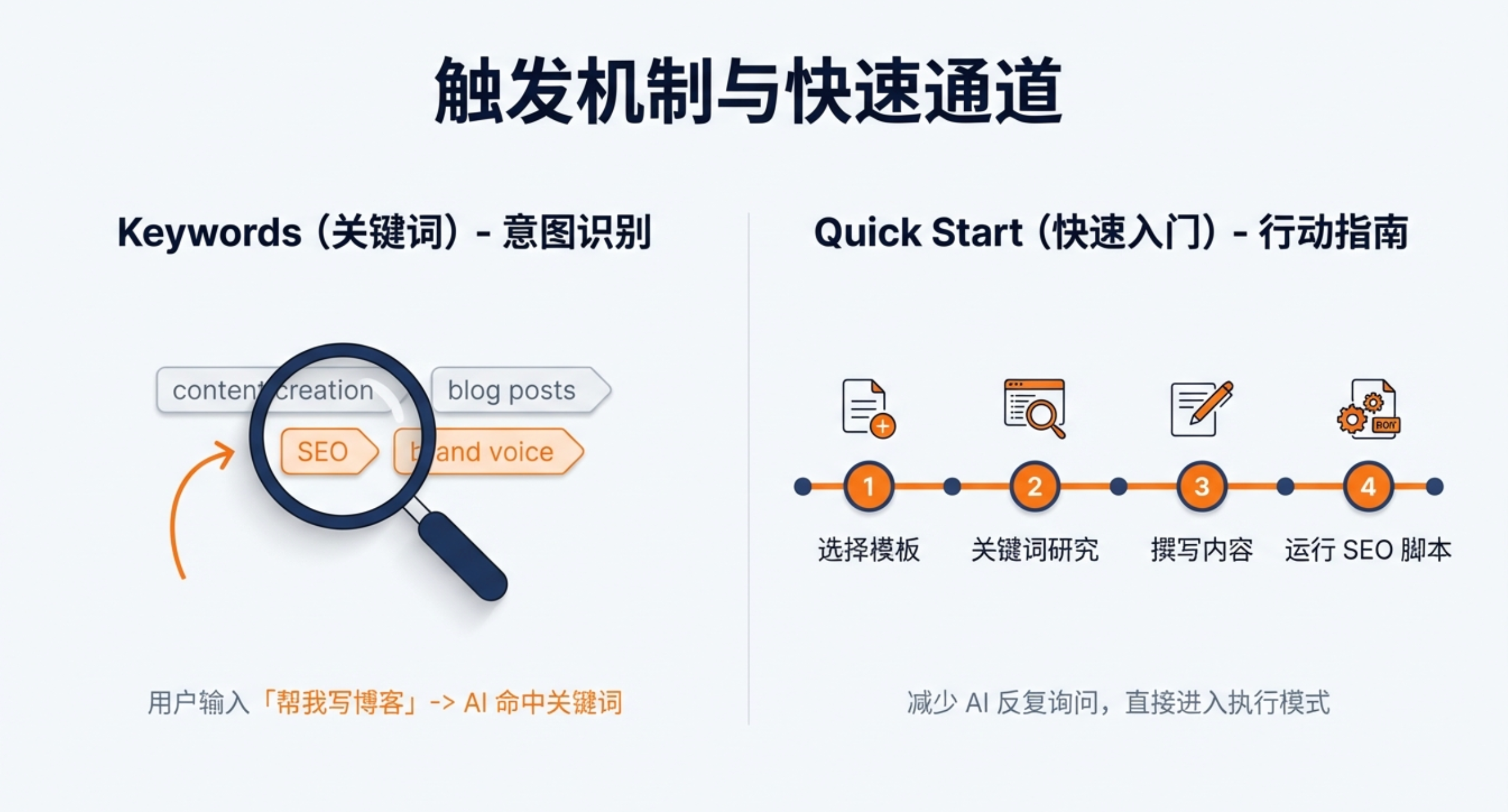 这部分是给 AI 的行动指南。当用户的意图很明确时,AI 可以直接按这些步骤执行,不用一步一步问你。