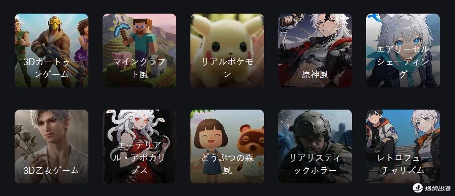 此外,还内置了一些热门游戏的风格模板,如原神、3D乙游、动森等。若现有模板无法覆盖需求,用户也可自行上传参考素材,生成独特的参考风格。