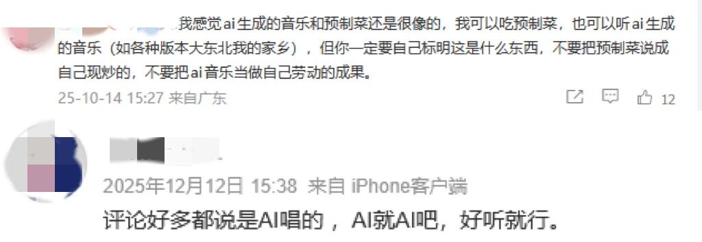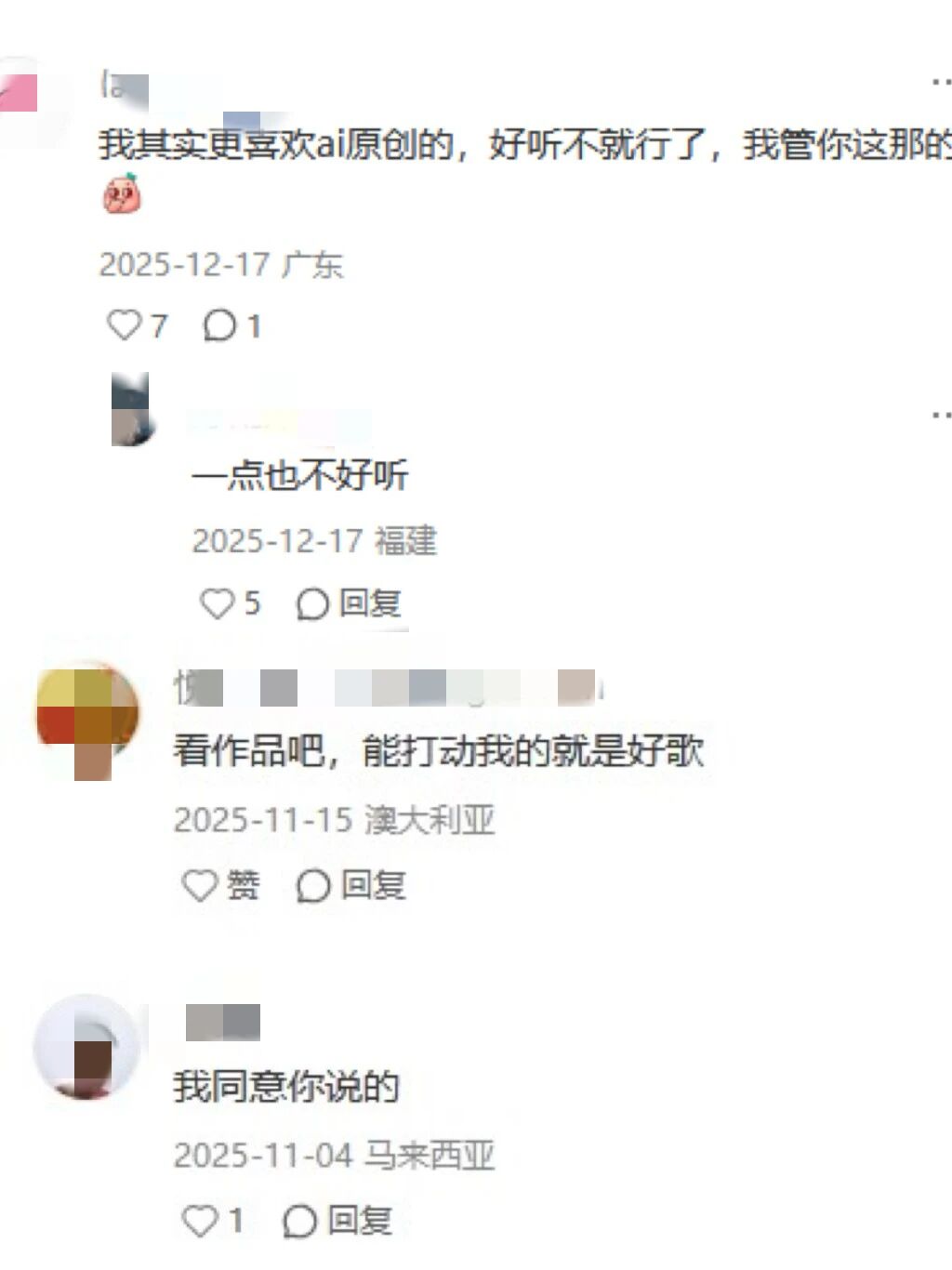 第一类听众,最典型的反应是,刚听觉得还行,一知道是AI,立刻下头,好感瞬间坍塌。