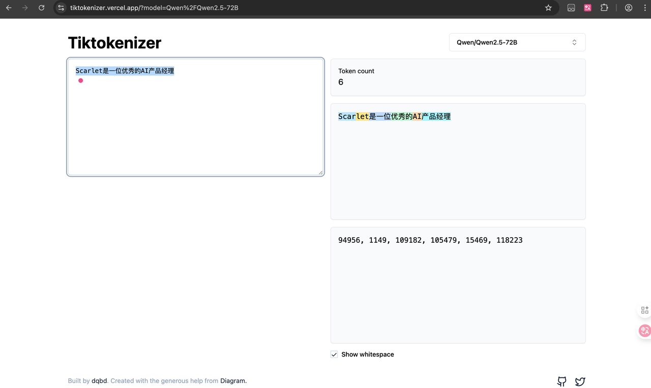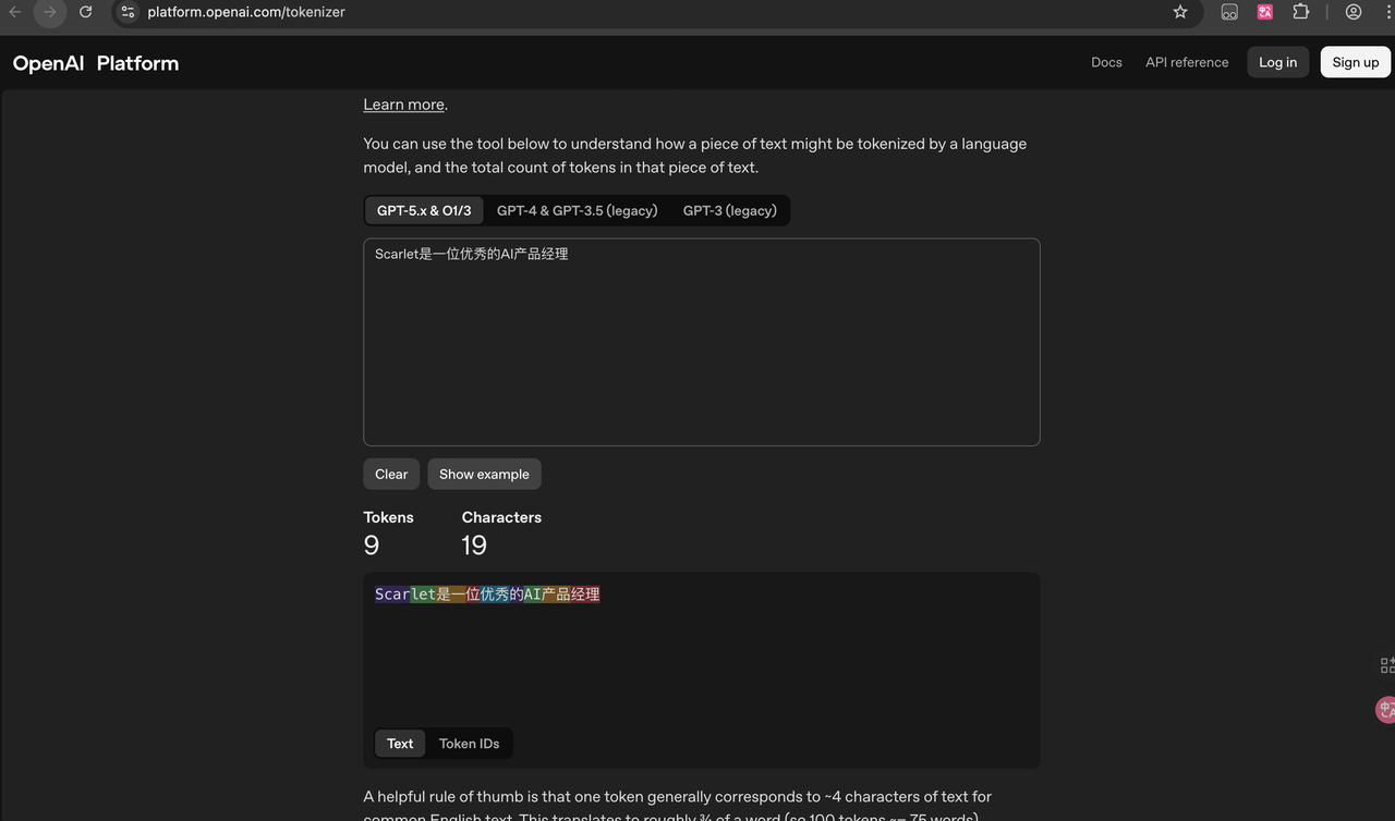 对于小白用户,首选各种GUI工具,比如GPT系列模型,可以通过官网工具进行查看,platform.openai.com。或者第三方网站,https://tiktokenizer.vercel.app/。