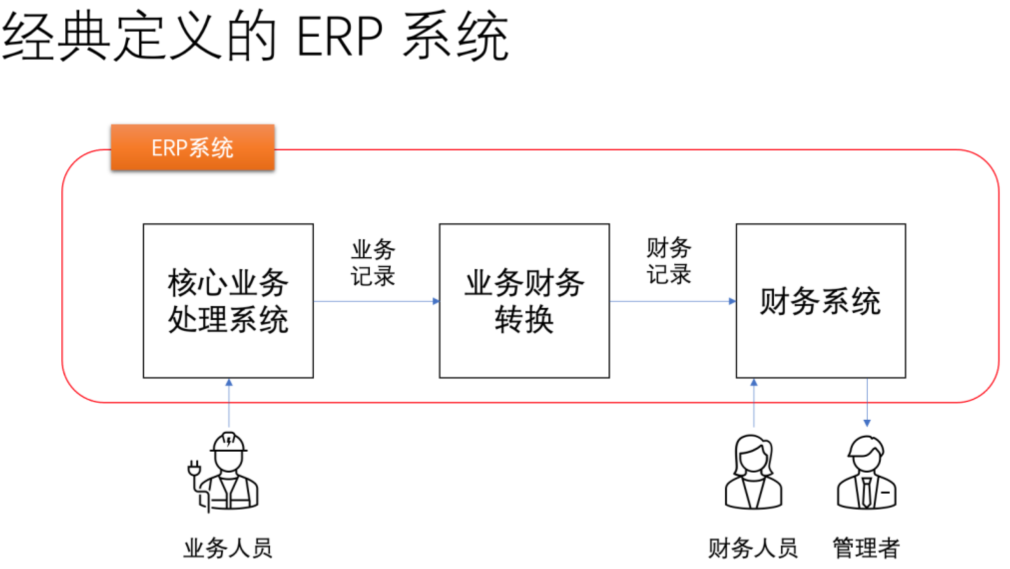 为什么我的定义里都在说账?因为ERP就是一个以记账和算账为目标的系统,不能否认因为记账和算账给一些业务操作带来了实质性的便利,但ERP并不是解决一线员工的业务操作问题的系统,正因为这个本质,我们才会在需要解决复杂的业务实操问题时围绕ERP建设一堆其他业务系统: