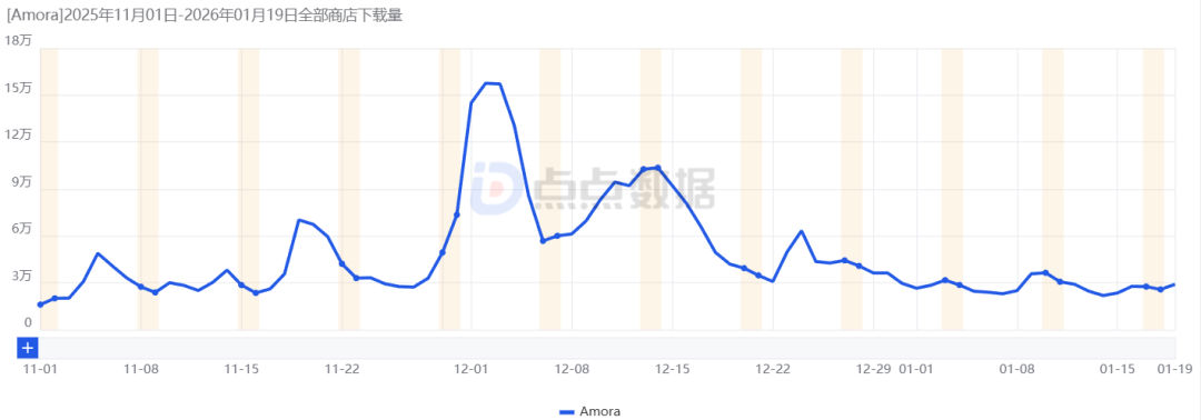 2025年11月1日至2026年1月19日Amora下载量变化,图源:点点数据