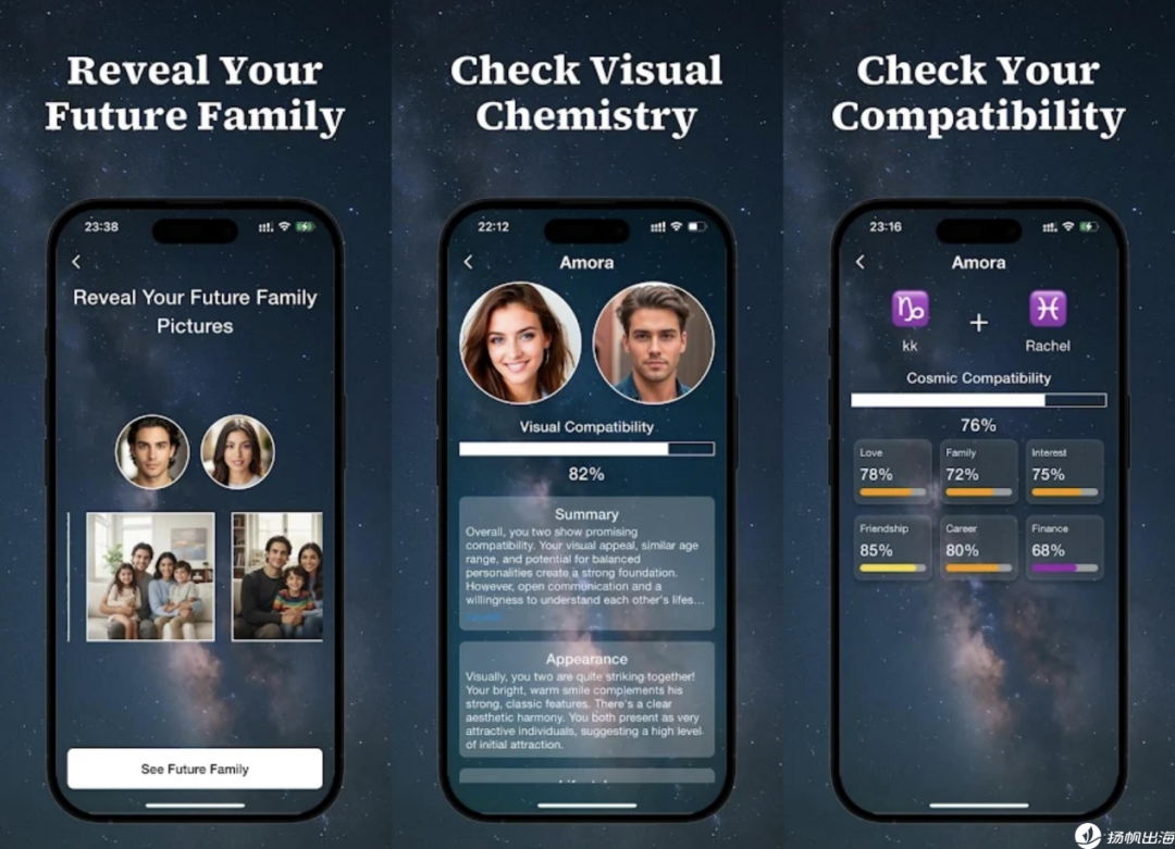 在这一背景下,Amora选择在交互形式与使用场景上做延展。一方面,它将AI对话引入“灵魂伴侣”叙事之中,拉长用户与产品之间的互动周期;另一方面,通过加入家庭关系、亲友契合度等预测内容,拓宽了占星功能的应用范围。同时,Amora将重心放在东南亚、拉美等地区,也为我们观察更广泛的玄学消费市场提供了新的样本。