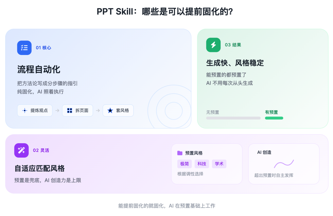 以「文章转 PPT」的 Skill 设计为例,哪些方法、资产是可以提前固化的?