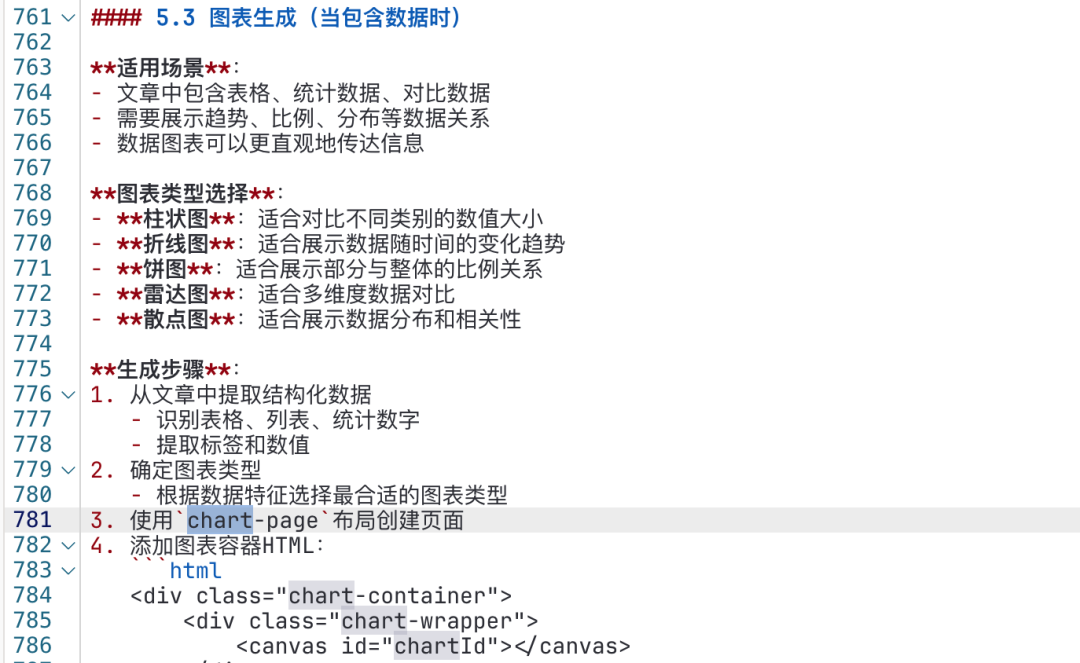 - 自适应匹配风格:常用的风格可以预置成文件(CSS、设计规范),AI 根据文章调性选择匹配;但如果遇到预置之外的需求,就交给 AI 自主发挥。