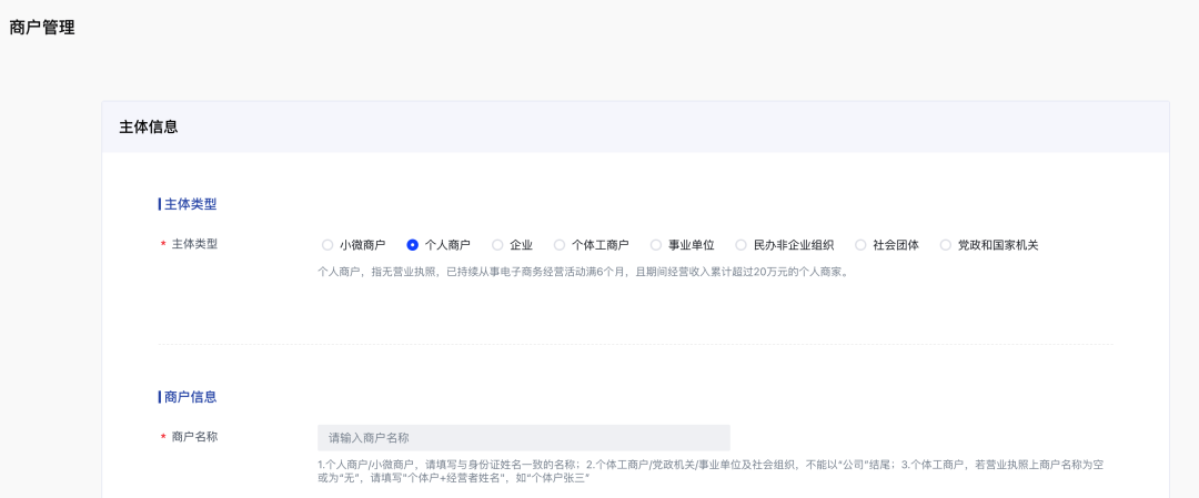 付费设置需要先在「开通商户」入口,开通收款账户: