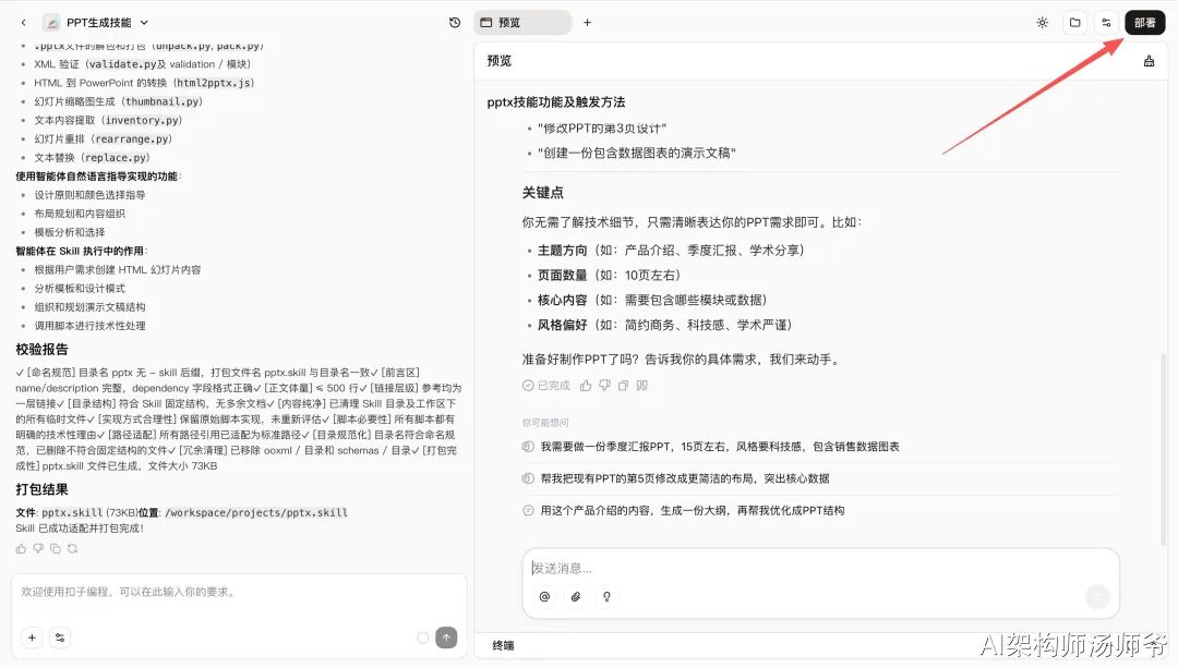 只要你的Skills工程没啥大问题,基本都能顺利部署。