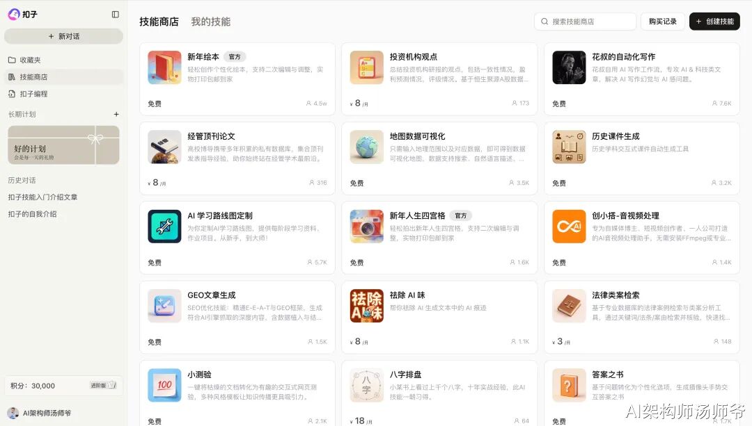 这次扣子2.0上线了Skills商店,你做的技能可以上架卖钱。