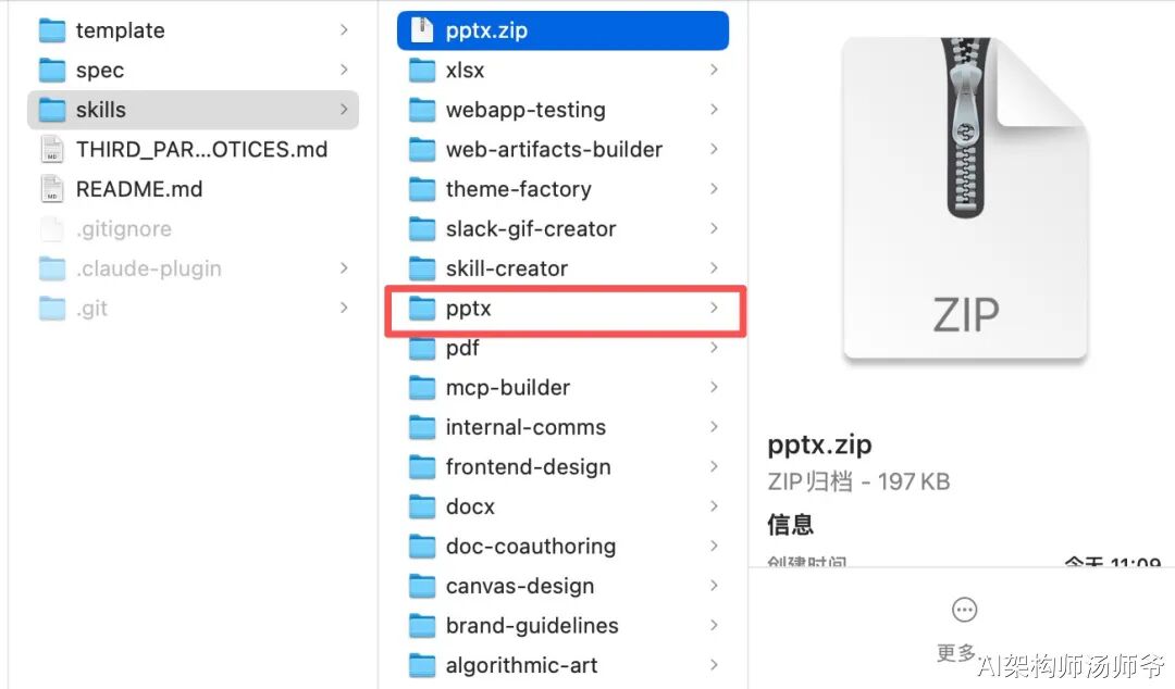 我用Anthropic官方提供的PPT技能来测试,将源文件压缩后,上传Skills文件压缩包。
