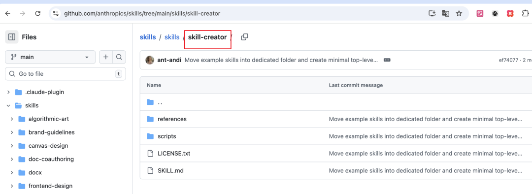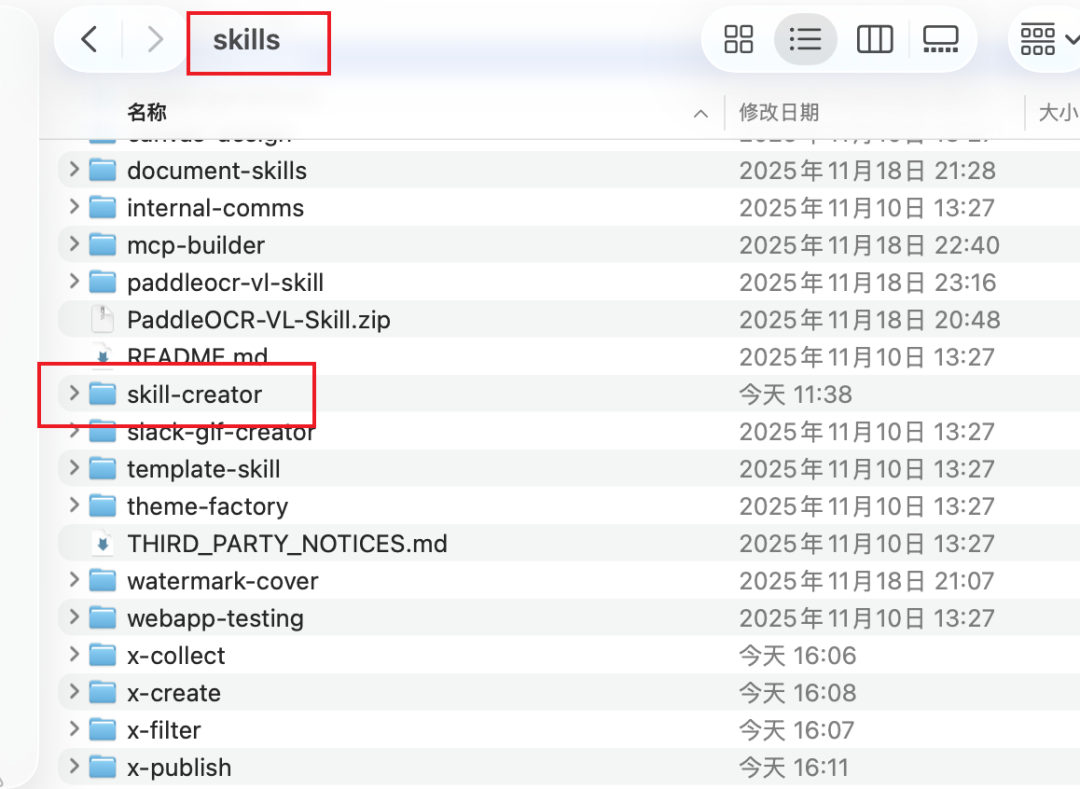 就是它,叫skill-creator,我们可以用它来写Claude Skills。