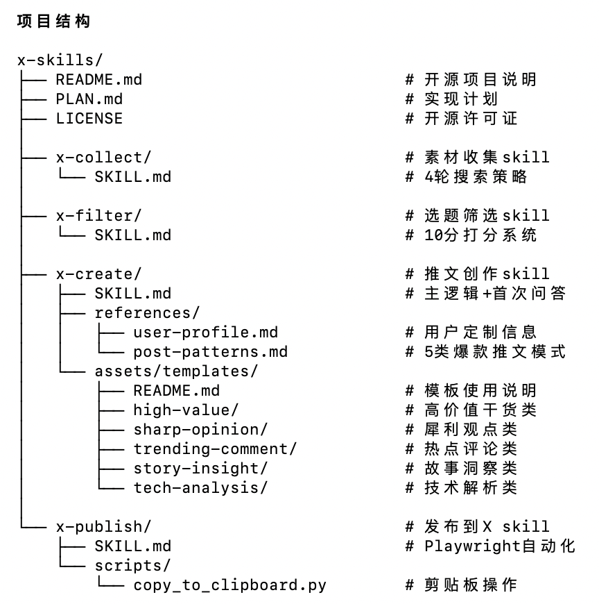 我就在想,其实X这一块我完全可以打造一套Claude Skills,作为的AI创作员工,帮我自动写推文(适用于起号阶段)