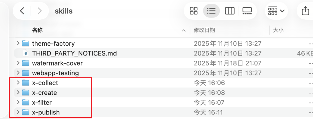 PS:如果是Windows系统,路径大概在:C盘/用户/你的用户名/.claude/skills。