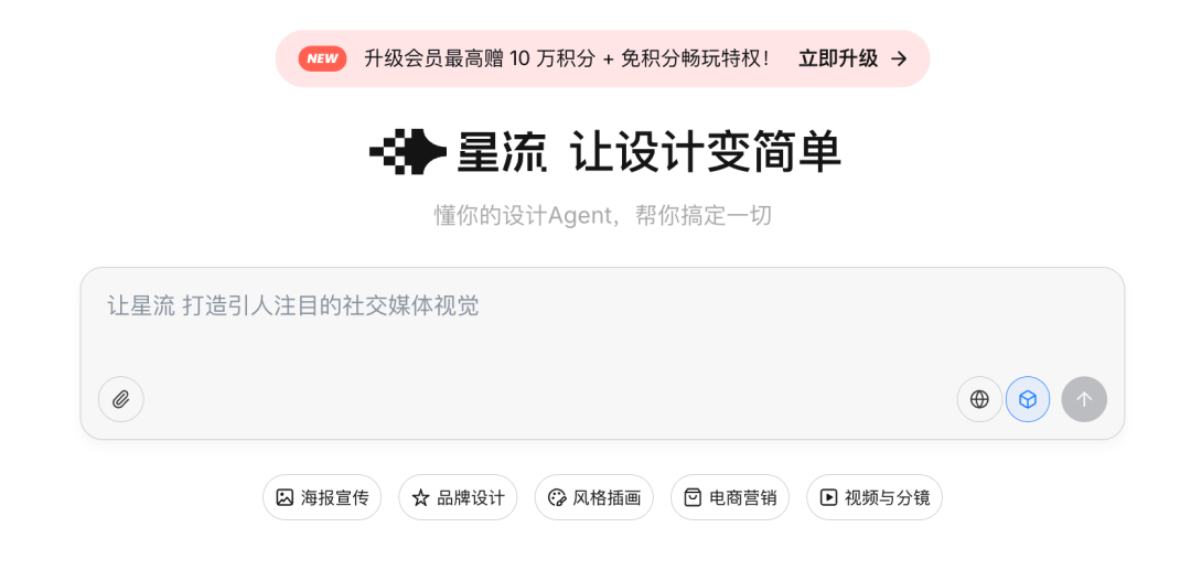 星流Agent算是Lovart的国内版,专门为国内优化,速度快,也更稳定,考虑到大家的易用性,这次我选择了星流Agent。