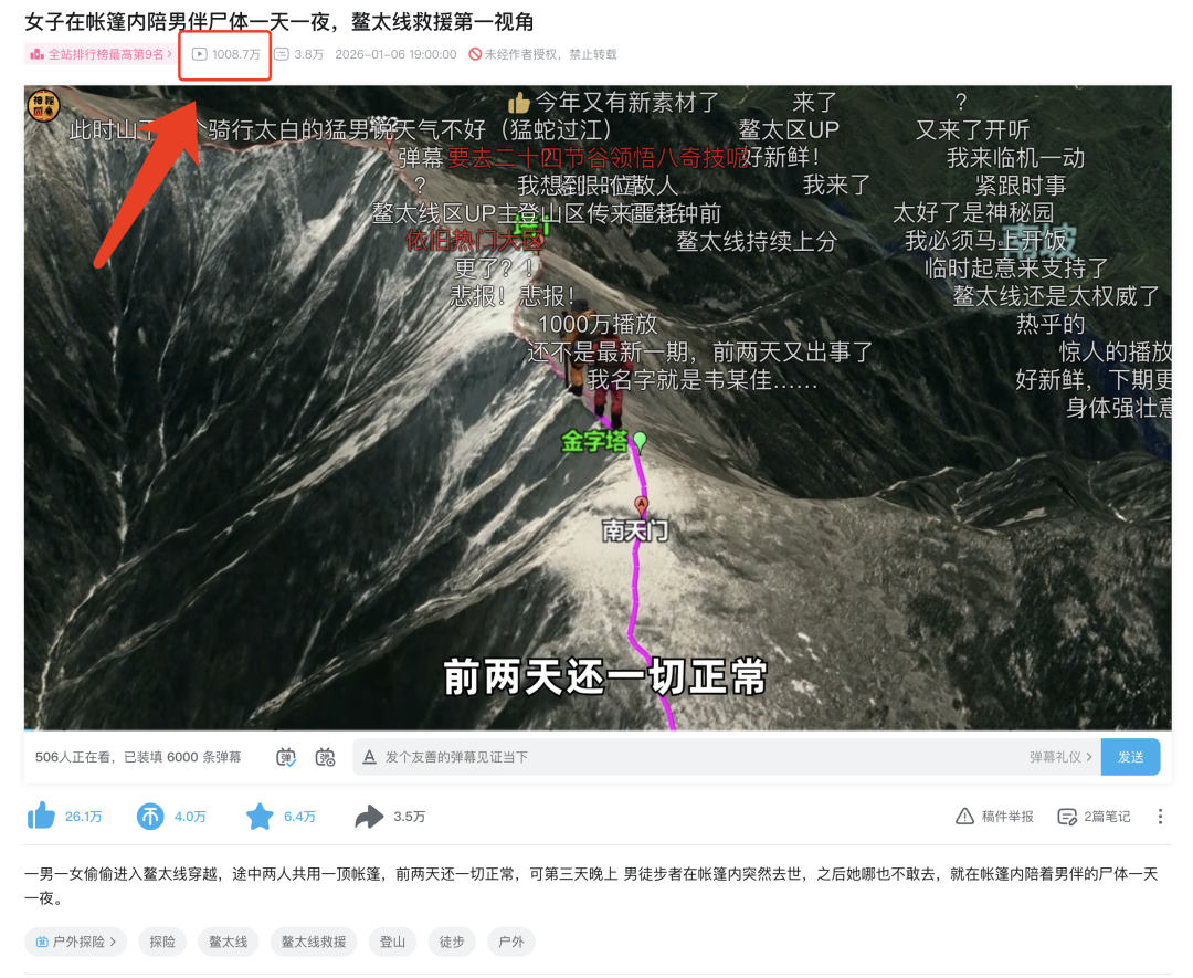 元旦鳌太线违规穿越致 3 人遇难的悲剧,让这条夺命线路彻底走入大众视野,创作者 @神秘园的事故科普视频也随之爆火。户外热潮下,年轻人为流量扎堆打卡高危秘境,甚至将安全警示当作徒步攻略,本文剖析背后的传播与人性问题,重申户外探险的核心从来是对生命的敬畏。