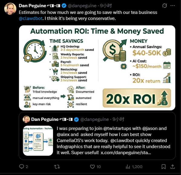 还有人用Clawdbot来经营一家茶叶公司,这个案例更是颠覆了传统小微企业的运营模式。