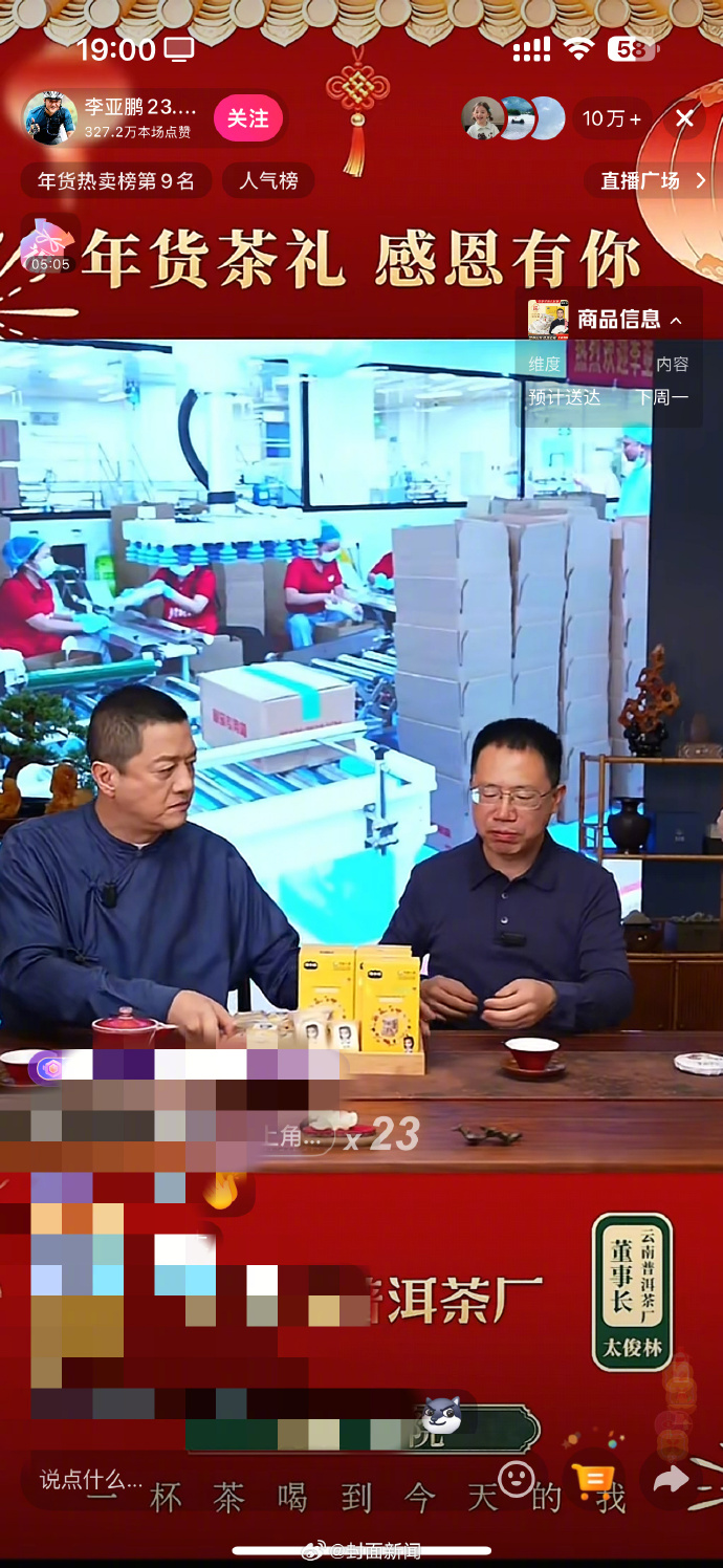 据了解,这场直播主要售卖茶叶、茶具、食品和日用品。其中,茶叶贡献了60%-70%的销售额,包括云南普洱茶厂系列、茉莉飘雪、古树生茶等,价格区间在39.9元-4913元,满足大部分用户需求。由于云南普洱茶厂的“五十周年礼包生茶”过于抢手,有消费者甚至在二手平台加价购买。此外,原粮稻花香二号大米,售价88元,半小时后售出4万袋,单链接销售额为250万-500万元。