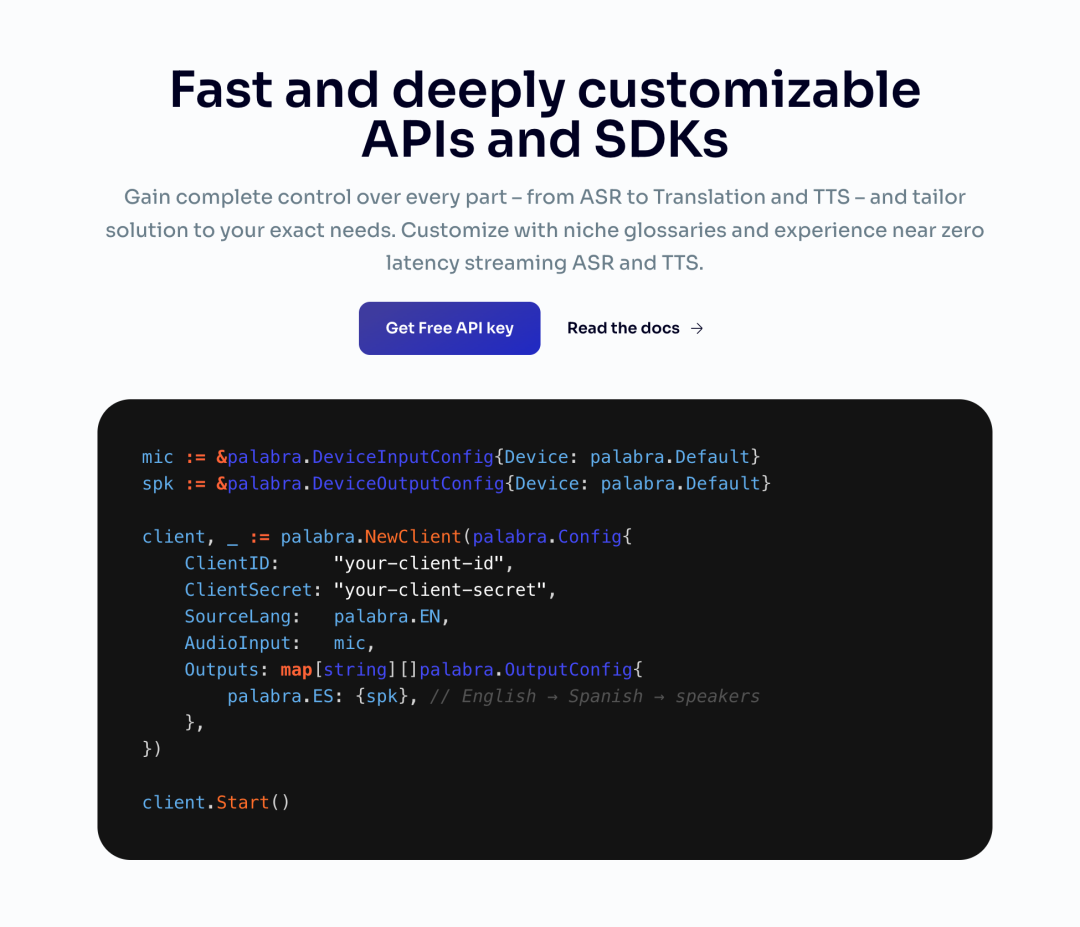 这种部署策略非常聪明。客户可以先在 Palabra AI 的云环境中测试和体验这项技术,当他们对延迟和翻译质量感到满意后,再决定是否要部署到自己的服务器上。这样既降低了客户的试用门槛,又满足了不同客户对安全性的不同要求。毕竟,没有人愿意为了测试一项技术而建立数据中心和安装计算设备,但如果只需要几行代码就能测试,那就完全不同了。