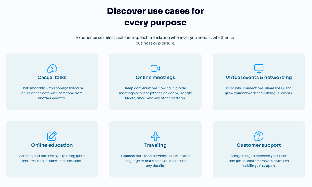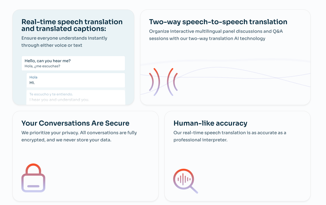 实时翻译市场的竞争确实很激烈。在消费者市场,像 Y Combinator 支持的 EzDubs 这样的初创公司正在构建适用于面对面或通话对话的应用。今年早些时候,Google 也在 Meet 上推出了视频通话的实时翻译功能。在企业市场,像迪拜的 Camb.AI 这样的公司正在构建用于多语言直播活动的翻译技术。
