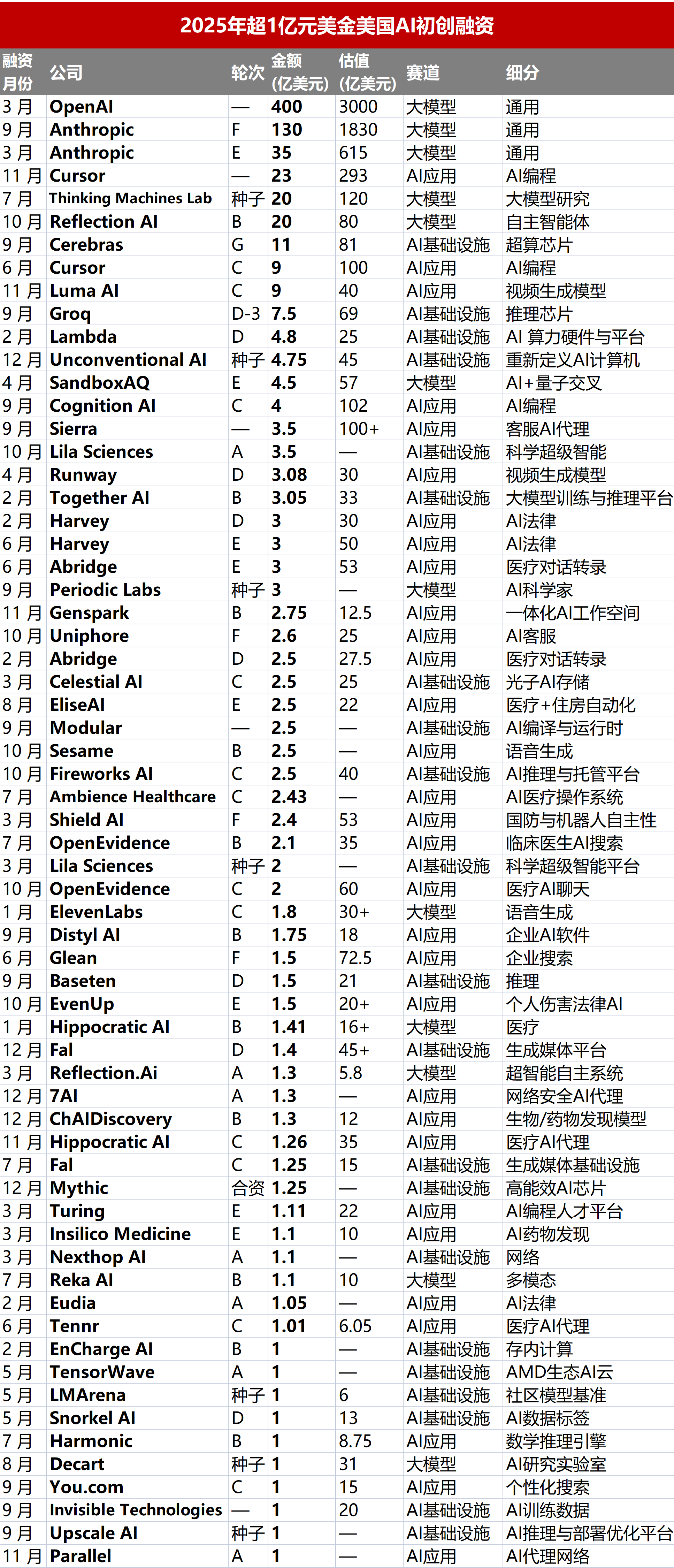 2025年的融资图谱显示,AI的价值正从“泛在的潜力”转化为“具体的生产力”。资本押注的是谁能用AI真正地降低研发成本、替代核心人力、突破物理极限、或垄断垂直行业的数据闭环。