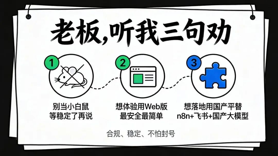 这套组合能实现Clawdbot 80%的能力,而且合规、稳定、不怕封号。