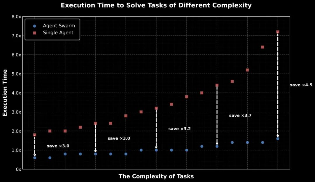 在Kimi这次的Agent集群上,我看到了一种新的可能性。它派出去的几十上百个Agent,不再是干着同样事情的实习生,而是一个分工明确的团队。并且团队的数量会根据任务的难度动态调整。