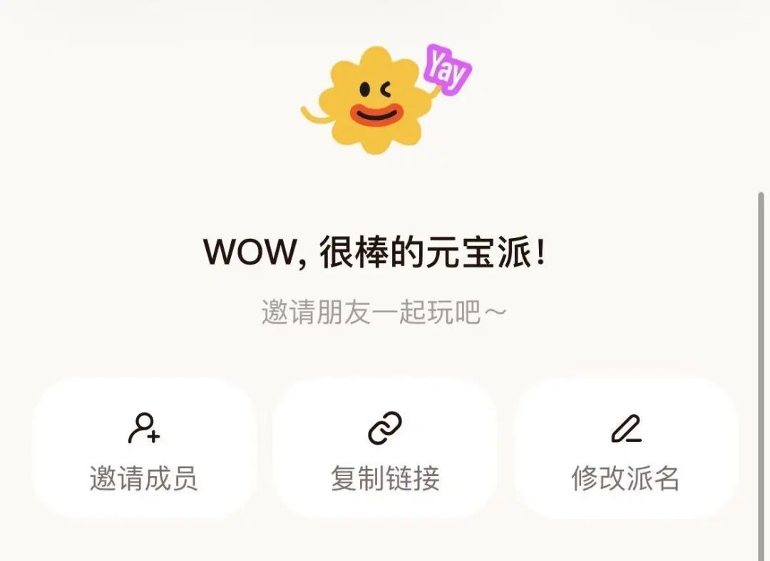 元宝派的社交形态落地,核心依托于腾讯既有的生态基础。借助微信、QQ的社交链路,用户通过邀请链接即可一键加入“派”,无需额外添加好友,降低了用户组队的操作成本,这一特点与腾讯长期积累的社交流量优势直接相关。