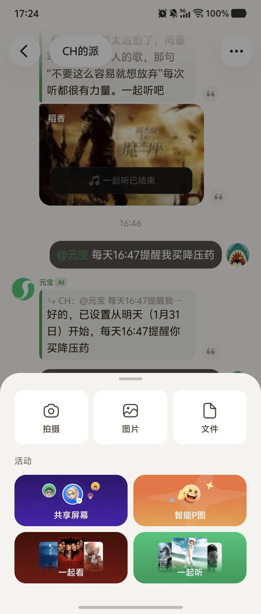 在真实的生活场景里,社交话题总离不开“规划、打卡、互帮互助”,元宝派此时则成为了“生活实用派”。