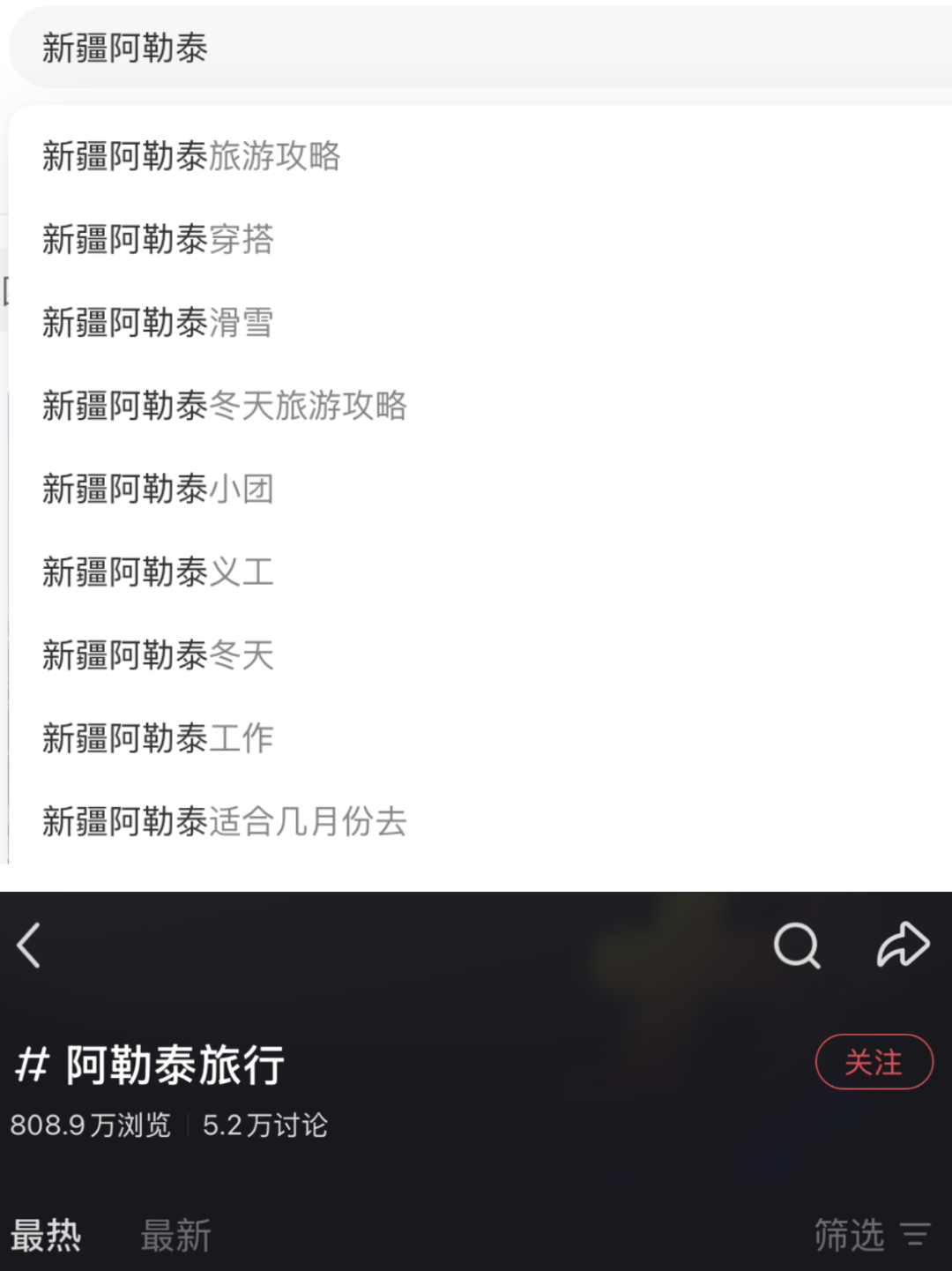 细分词:新疆阿勒泰冬季3人家庭小团,这种词的流量一定更小,但场景具体,需求更强烈。