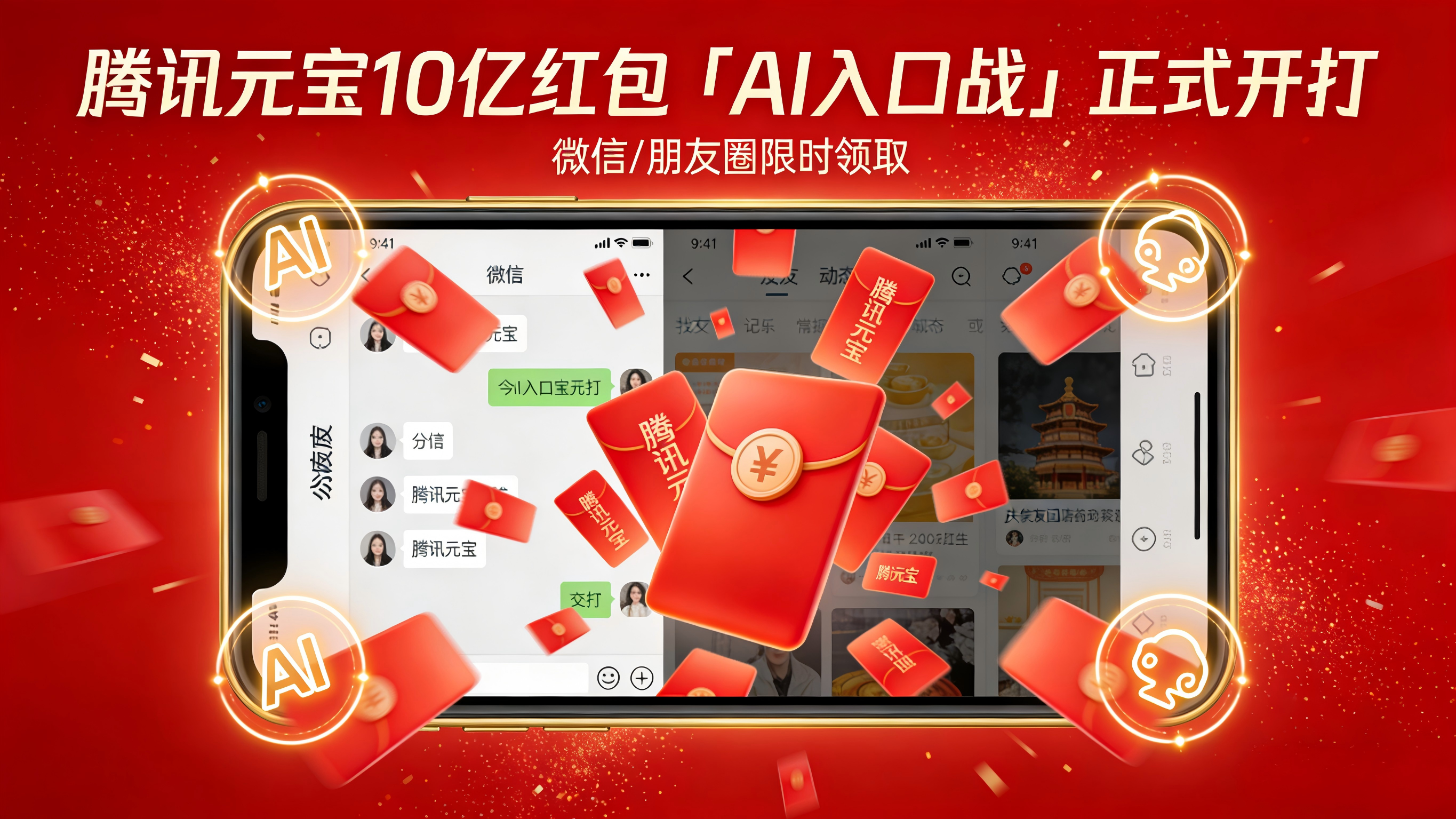 2月1日,腾讯的AI应用元宝正式上线总规模约10亿元的春节现金红包活动。