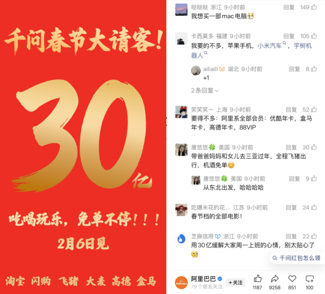01 千问30亿,元宝10亿,新一轮红包大战来势汹汹