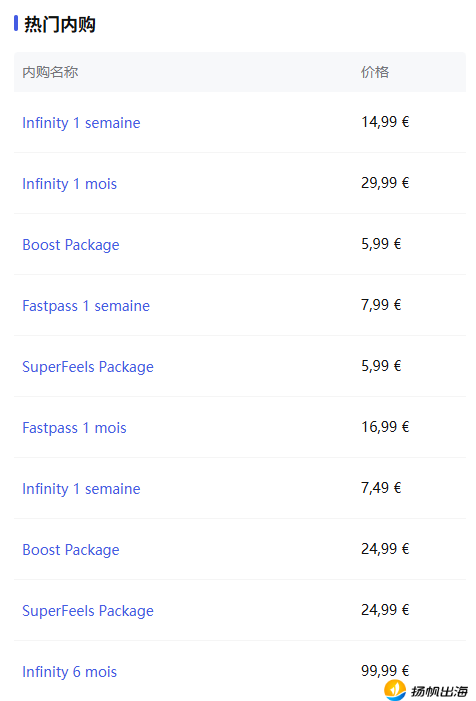 (Feels热门内购项目及价格,图源:点点数据)