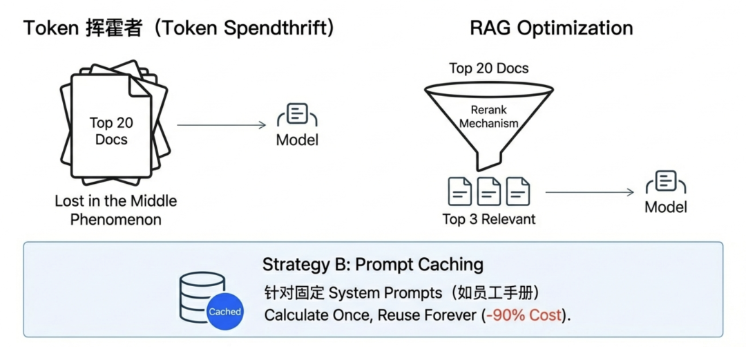 引入 Rerank(重排序) 机制,只取相关度最高的 Top 3。很多时候,少即是多。给模型塞太多无关信息,不仅费钱,还会导致“Lost in the Middle”现象,降低准确率。