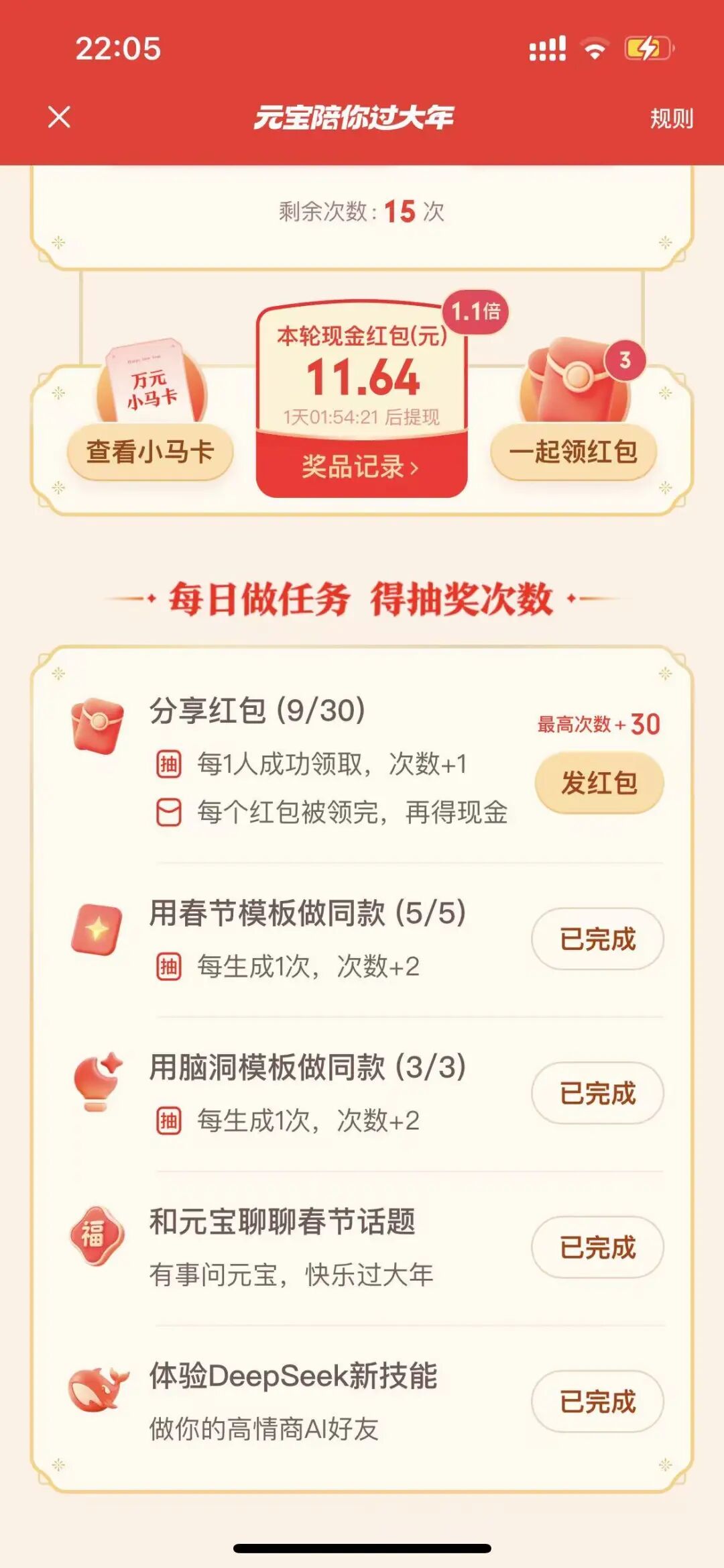 再看各类任务,基本上就是体验元宝的各种功能。