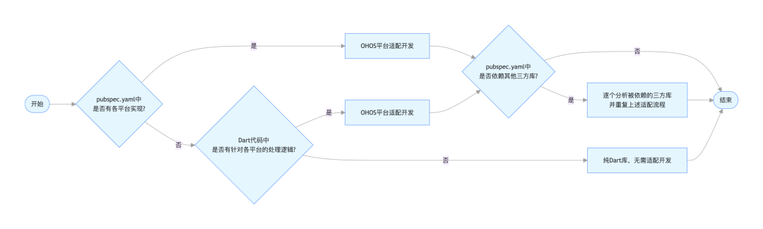 - Flutter 三方库是否需要 OHOS 适配,核心判断依据是是否包含平台原生实现/平台差异化逻辑,纯 Dart 库无需适配;