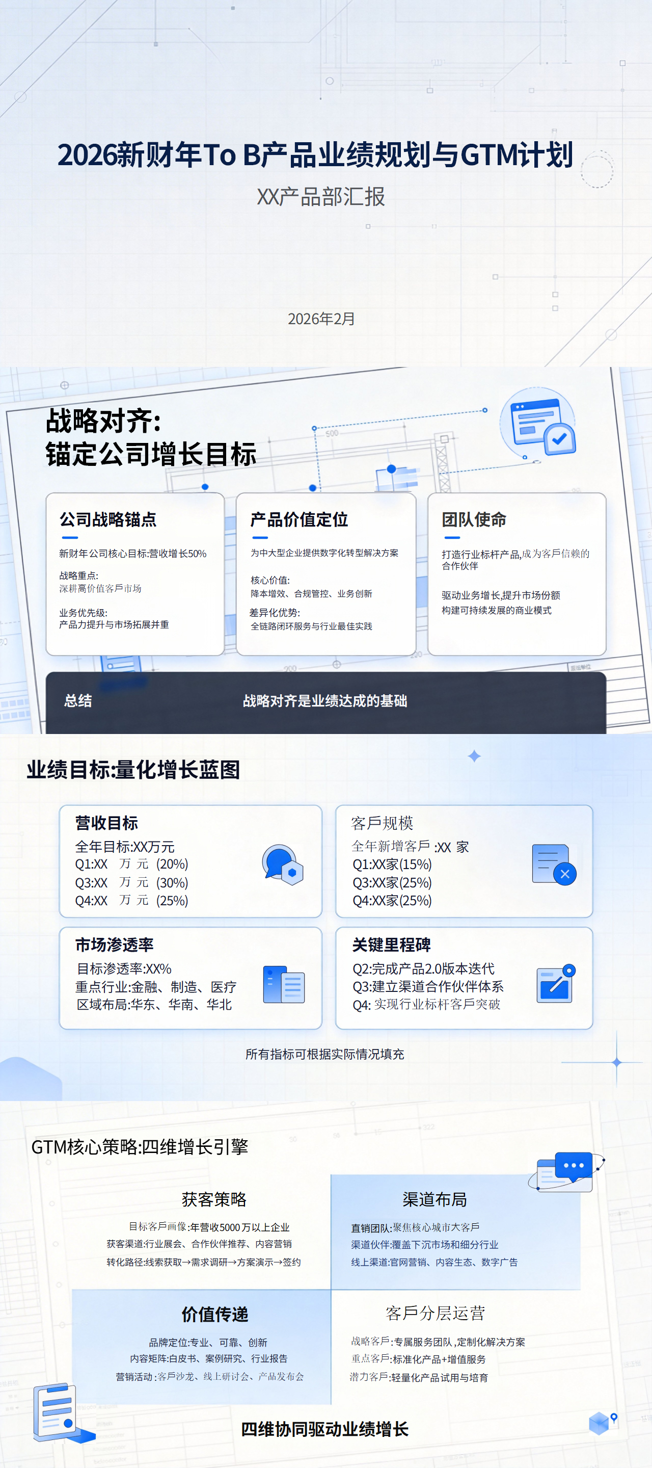 ——用同一段提示词,就做一份适配我们 To B 产品的2026 财年业绩规划 + GTM 落地计划 PPT。