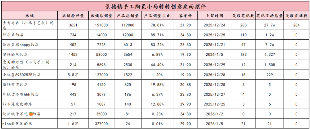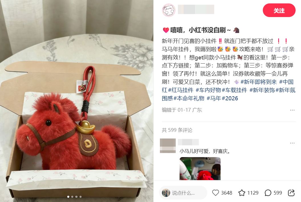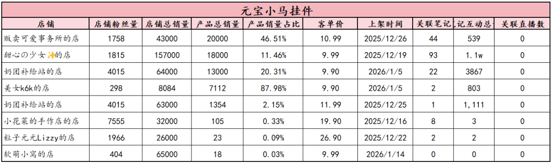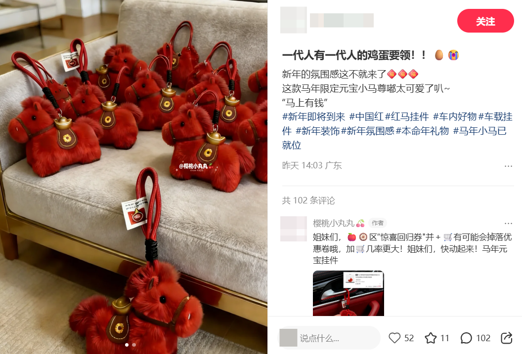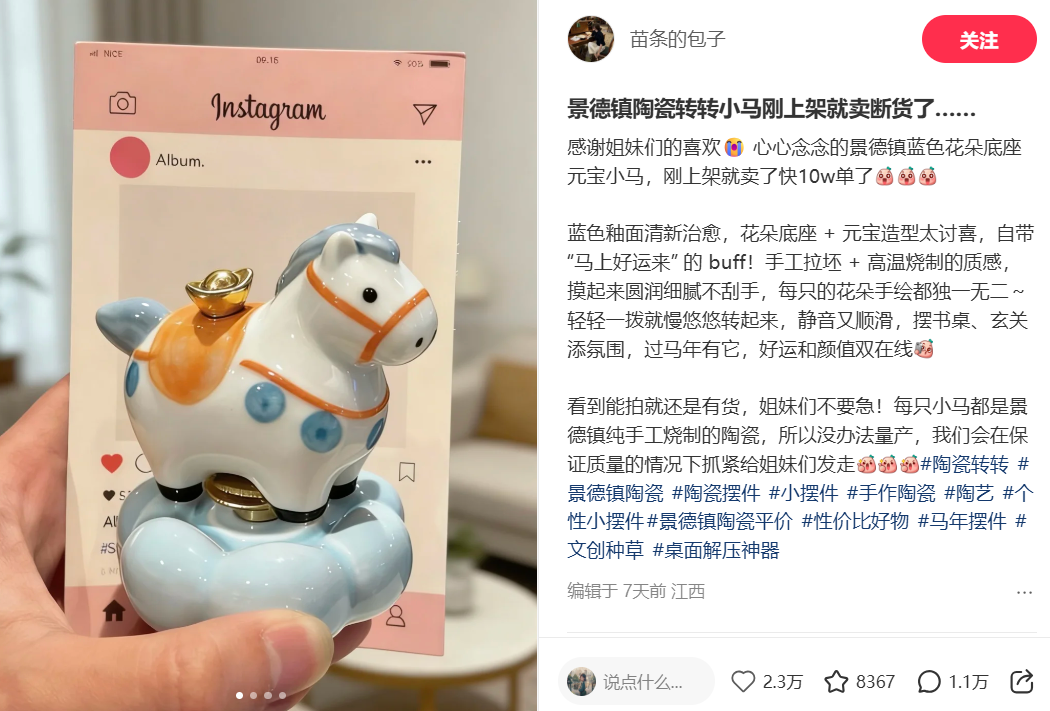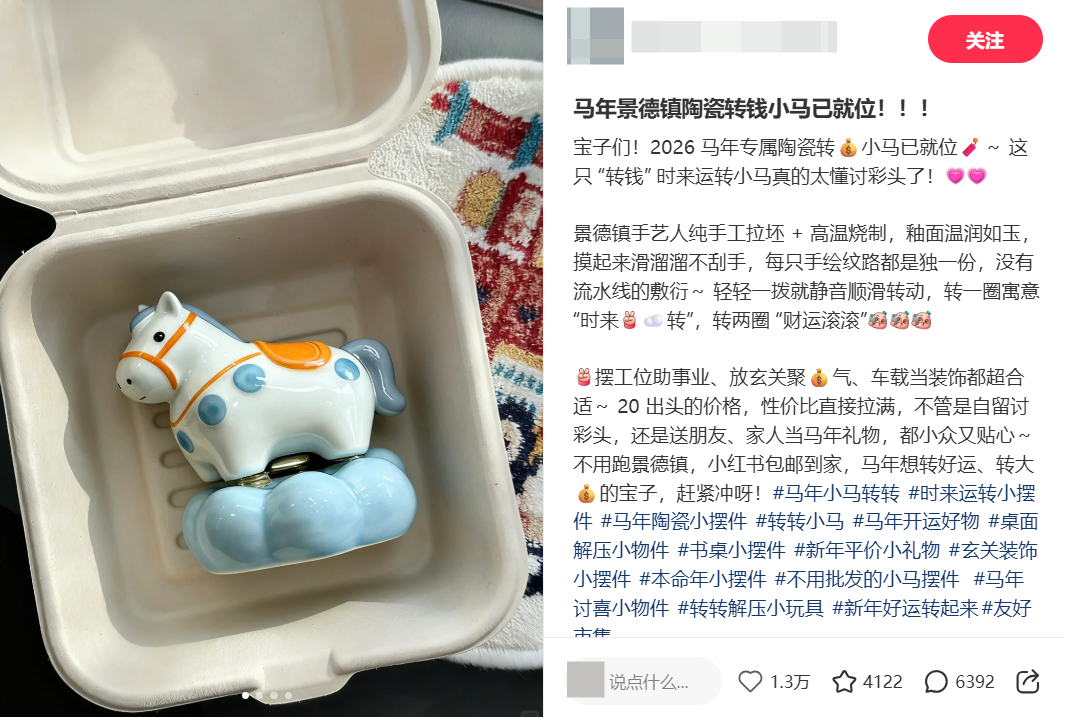 兼具【马年氛围感+解压治愈+小众礼品】3重属性,属于春节场景下的高性价比摆件,客单价集中在19.9-29.9元,用户对价格敏感但愿意为颜值和节日属性买单。