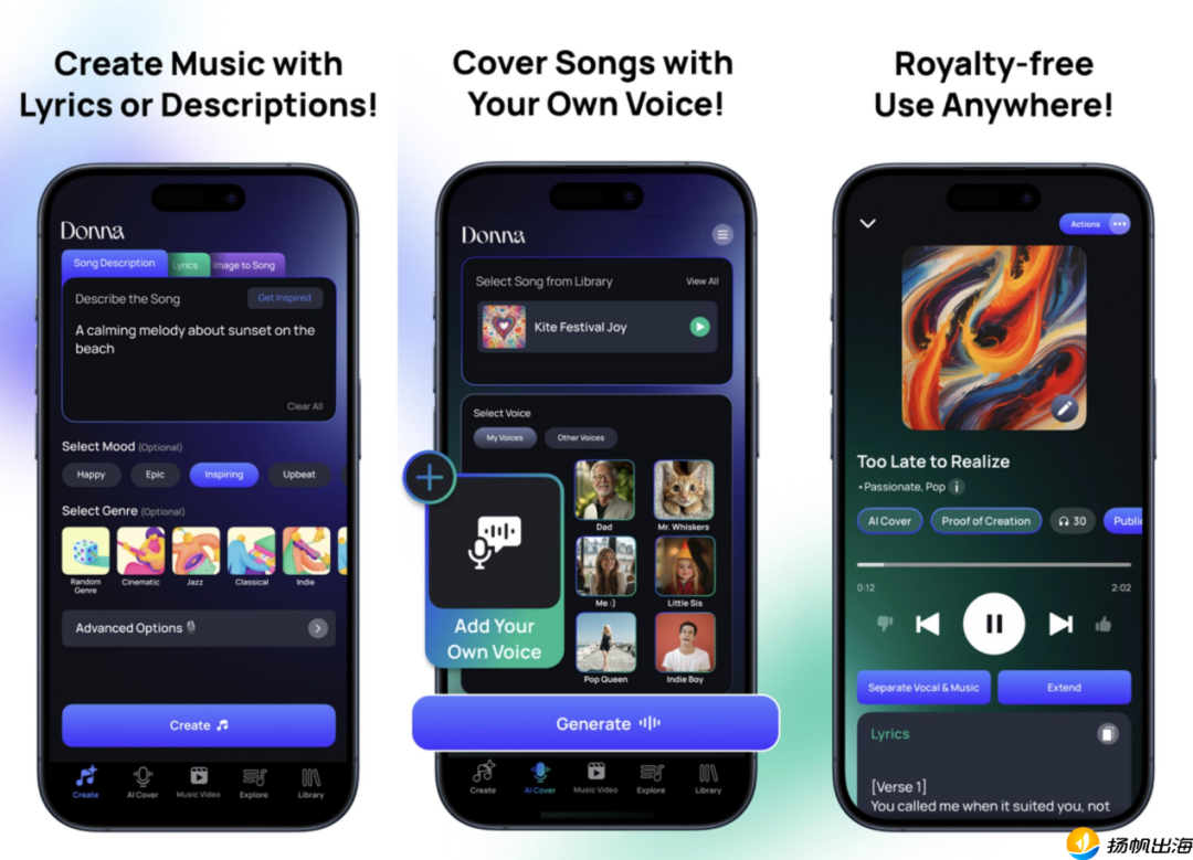 Donna AI图文生成音乐和翻唱功能,图源:点点数据