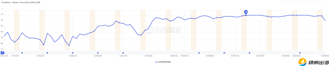 (近90天,TrueShort在美国新闻应用榜排名情况,图源:点点数据)
