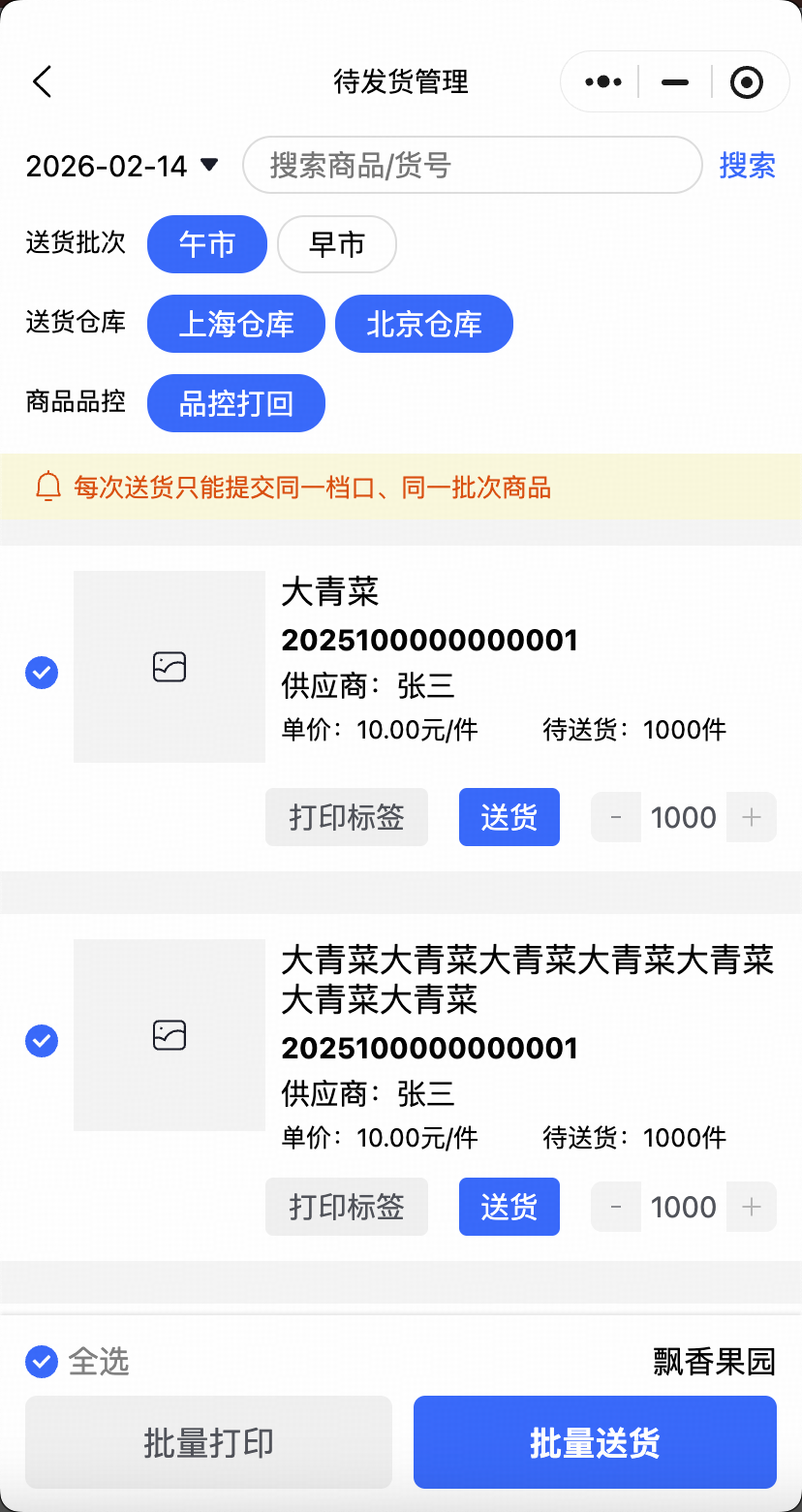在生鲜配送、快消品分销等场景中,商家的发货需求往往是动态且复杂的:库存不足时需要分批配送、临时调整订单时要灵活控量、不同仓库要分货履约 。但在原有系统中,商家只能对货号进行全量发货,无法自定义发货数量,这直接导致了一系列效率问题: