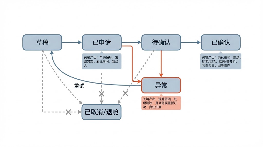 订舱管理要做的,是把这些黑盒变成状态机 + 数据回执 + 可预警的计划。