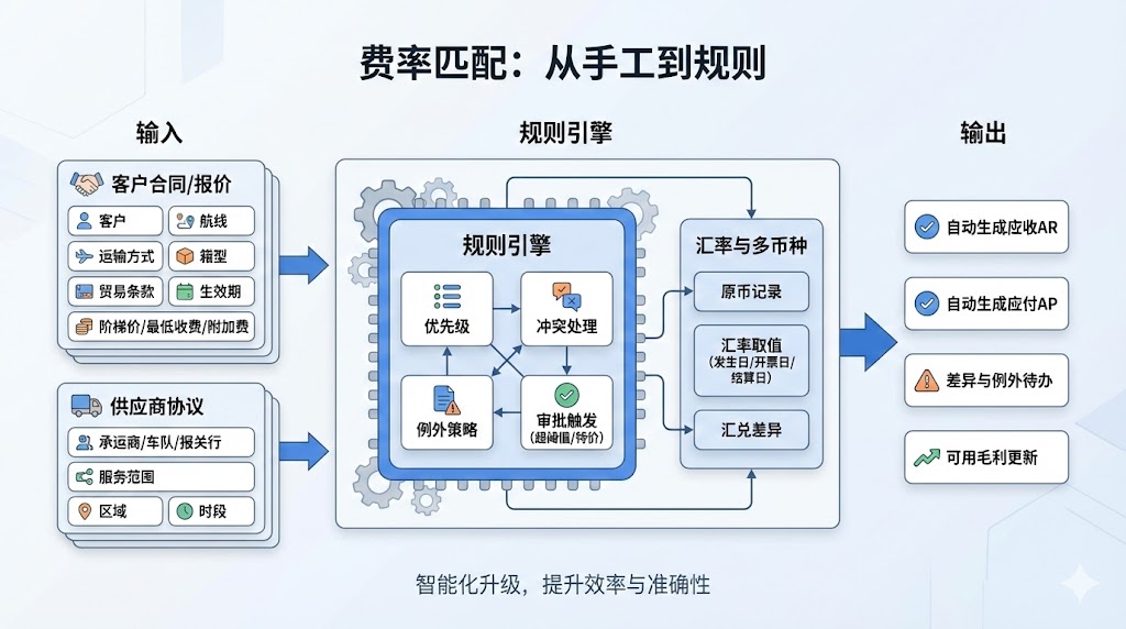 费用管理的自动化,往往从费率匹配开始: