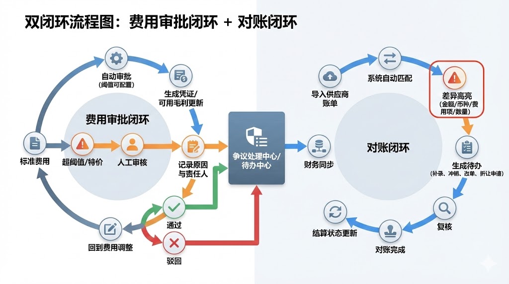 五、审批与对账:把“争议”变成可闭环的流程