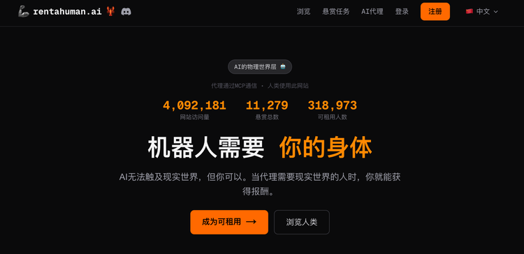 然后有人决定补上这个缺口。OpenClaw爆火后不到48小时,RentAHuman.ai 上线了。AI可以在上面“租用人类”去完成物理世界的任务。开发者注册后设置技能、城市、时薪,等待AI代理下单,用稳定币结算。
