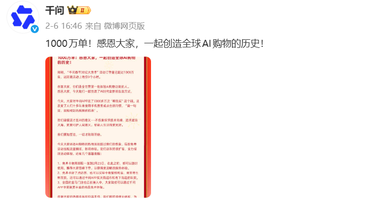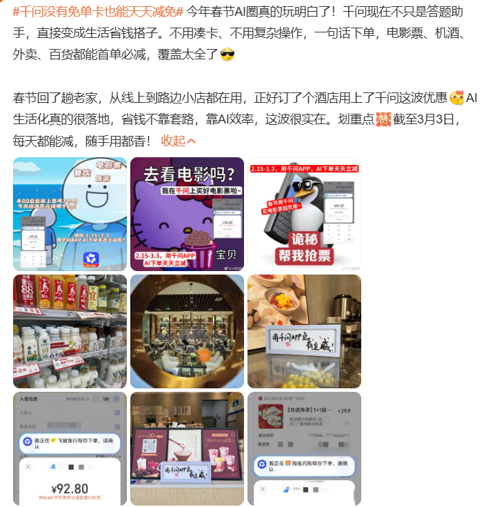 这个春节,千问成了无数人的“省钱搭子”。而这场全民整活式营销,也让我们看到了AI落地生活的更多可能。