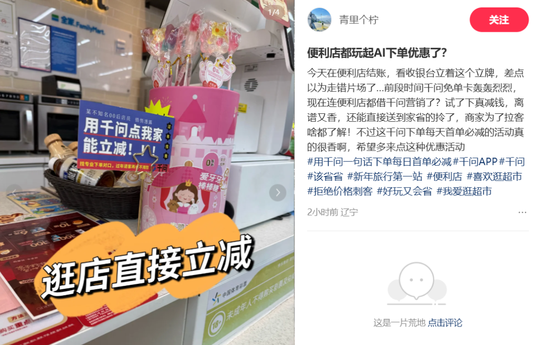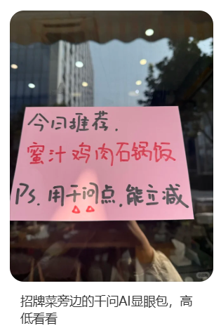 店家自发“蹭热度”,让千问AI下单融入线下真实生活,商家尝到了引流甜头,用户也得到了实惠,让活动从“平台推动”变成了“全民传播”,落地感拉满。