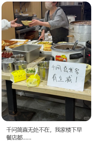 随后,越来越多的“千问据点”被网友发掘:早餐店、面包房、街边小炒、健身房、甚至小区门口的菜摊……千问的下单提示标识,悄然出现在各种意想不到的地方。